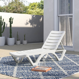 Sit down back and soak upwards the sun in way with this relaxing 74" long chaise lounge. Its frame is fabricated from resin, and it showcases a classic silhouette with a slatted seat and curved legs. The well-baked white finish tin alloy in with whatsoever color palette and is resistant to UV, chlorine, salt, and suntan oils. The back can be adapted to 5 positions, so you tin become comfortable, and information technology features a stackable design for easy storage during the wintertime months. To clean, only hose it down, or wash information technology with balmy soap and water, and let it air dry.