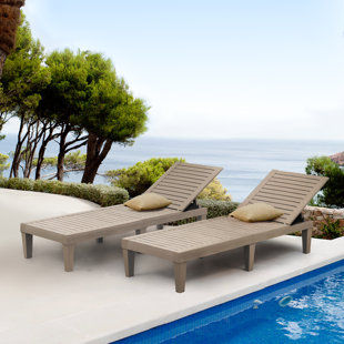76.75'' Long Reclining Acacia Chaise Lounge Set with Cushions (Set of 2)